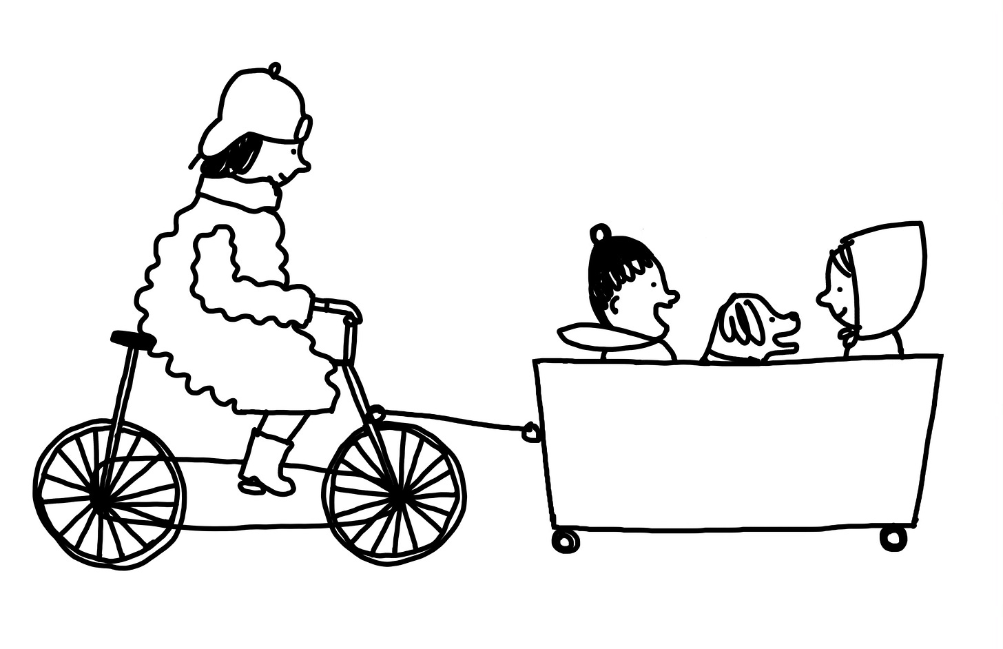 Groundhog shmoundhog, this morning I saw a lady in an extremely puffy coat delivering some children to school in a wagon (she was riding a bicycle). They had a tiny dog with them. I think this is a SURE sign that SPRING IS COMING!
